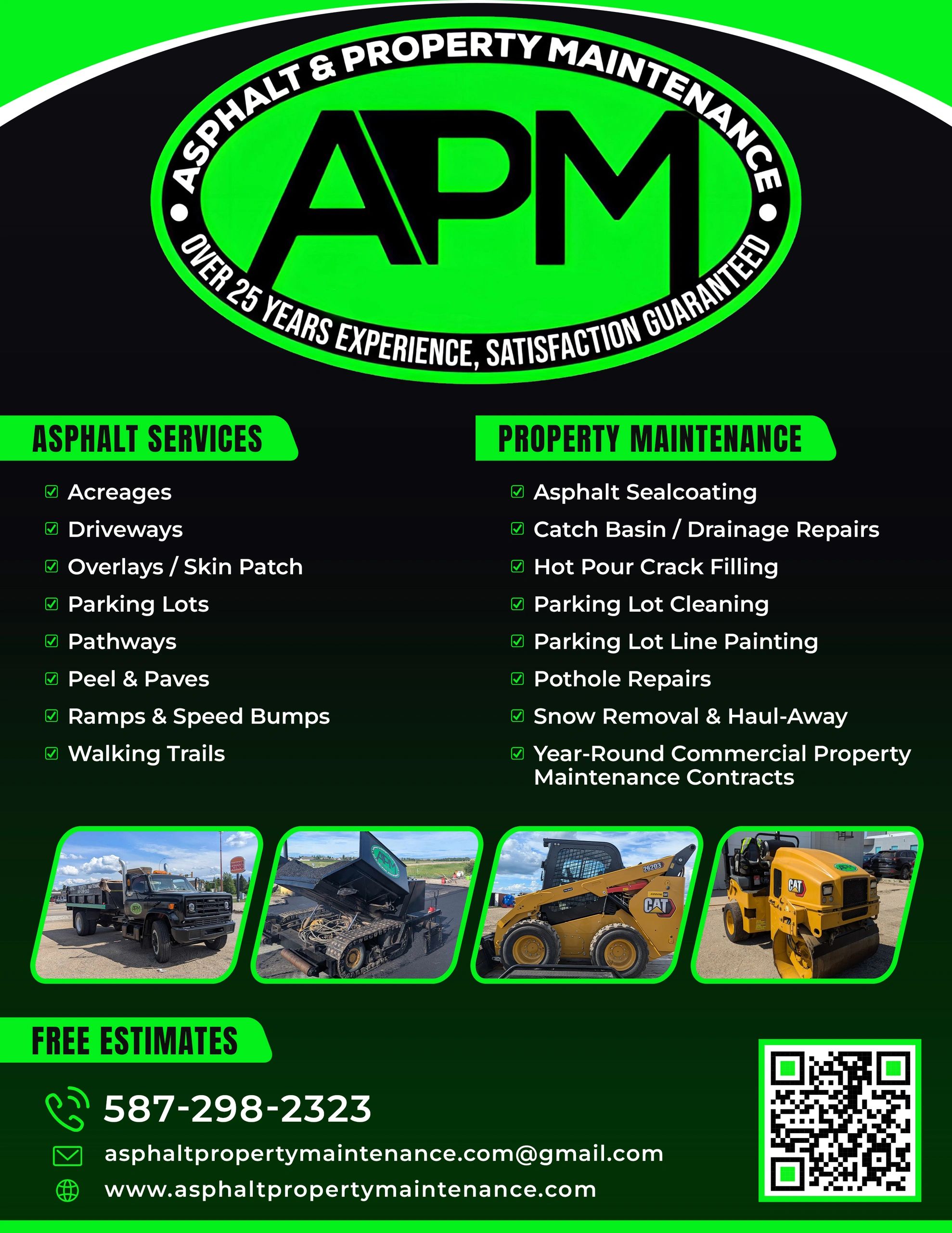 (587) 298-2323 asphaltpropertymaintenance@gmail.com Or message us on Facebook!